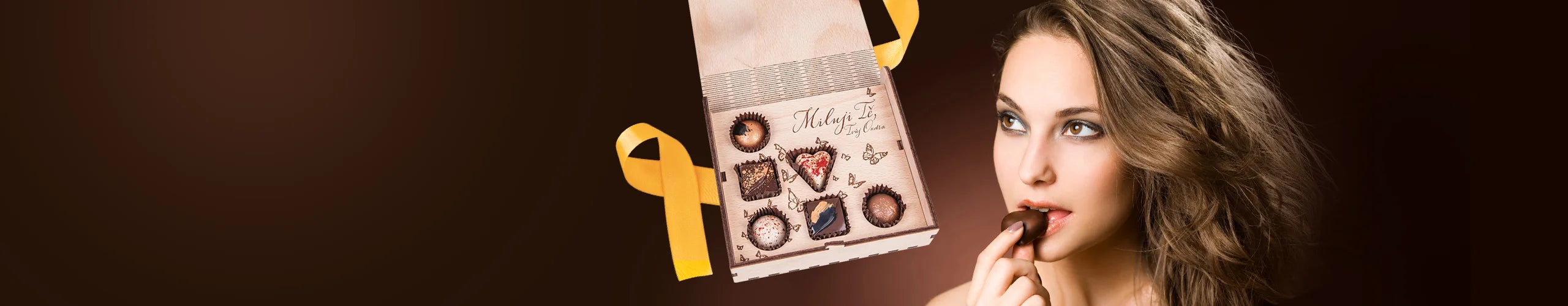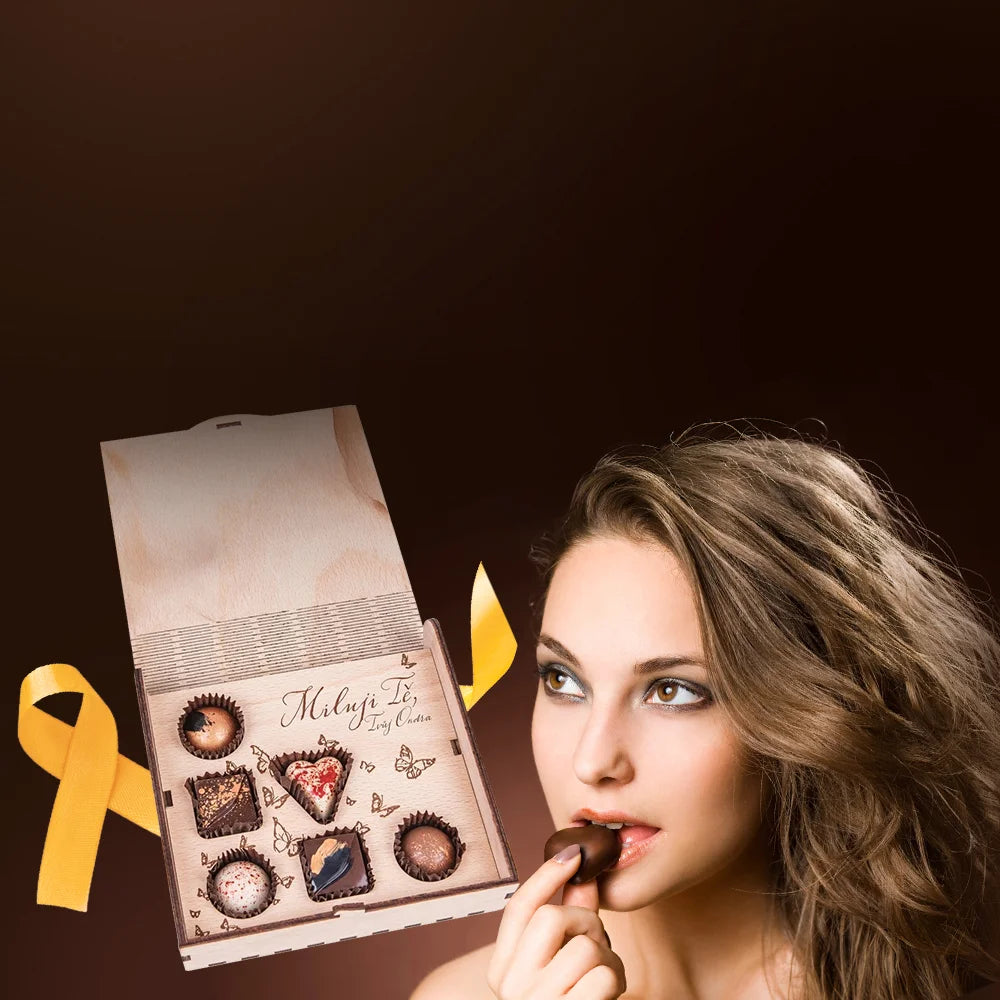 Качествени продукти в дървена кутия с персонализирано гравиране на вашето посвещение.