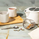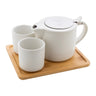 Vysoce kvalitní keramická čajová sada s matným povrchem a bambusovým servírovacím podnosem. Včetně konvice na čaj (500 ml) s víkem z nerezové oceli a sítkem na čaj a dvou šálků (150 ml). V krabičce z kraftového papíru.