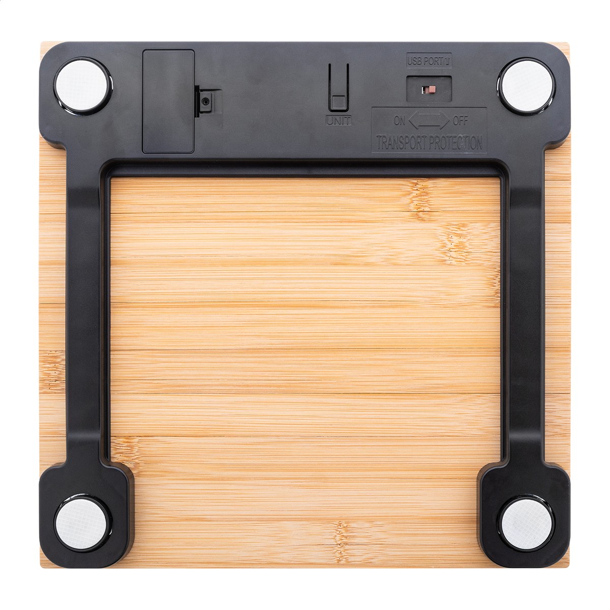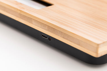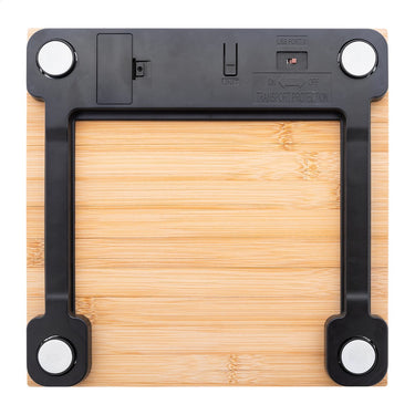 Digitální koupelnová váha s bambusovou vážicí plošinou. Vážení: 150 kg, stupnice 0,1 kg, měrné jednotky: kg/lb/st. S vestavěnou dobíjecí baterií. Včetně USB nabíjecího kabelu.